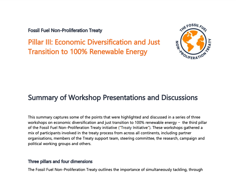 The Just Transition Pillar of the Fossil Fuel Non-Proliferation Treaty proposal