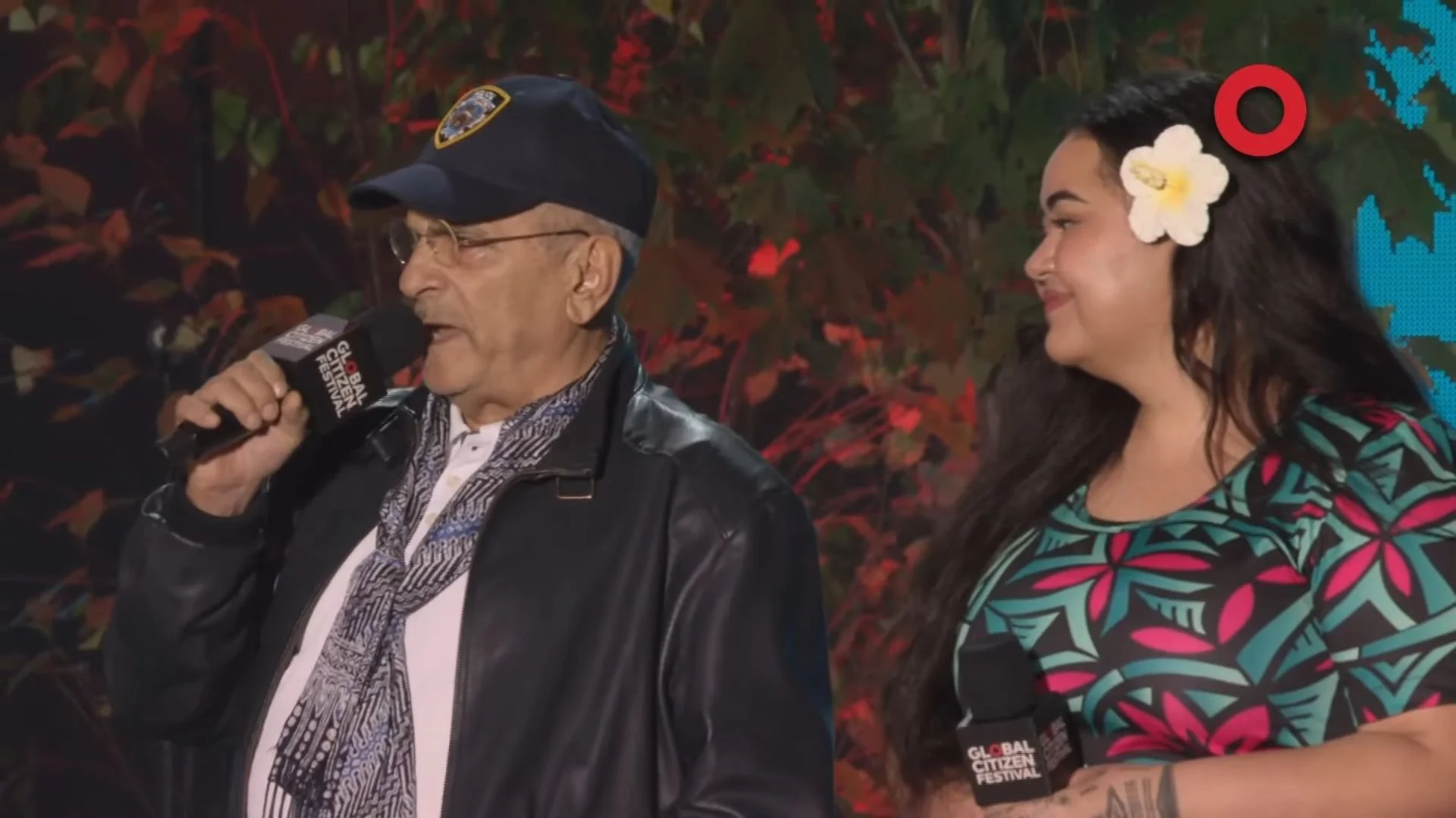 H. E. José Ramos-Horte, President of Timor-Leste and Pacific Climate Warrior Brianna Fruean formally call for negotiation of a Fossil Fuel Non-Proliferation Treaty on stage of the Global Citizen Festival 2023