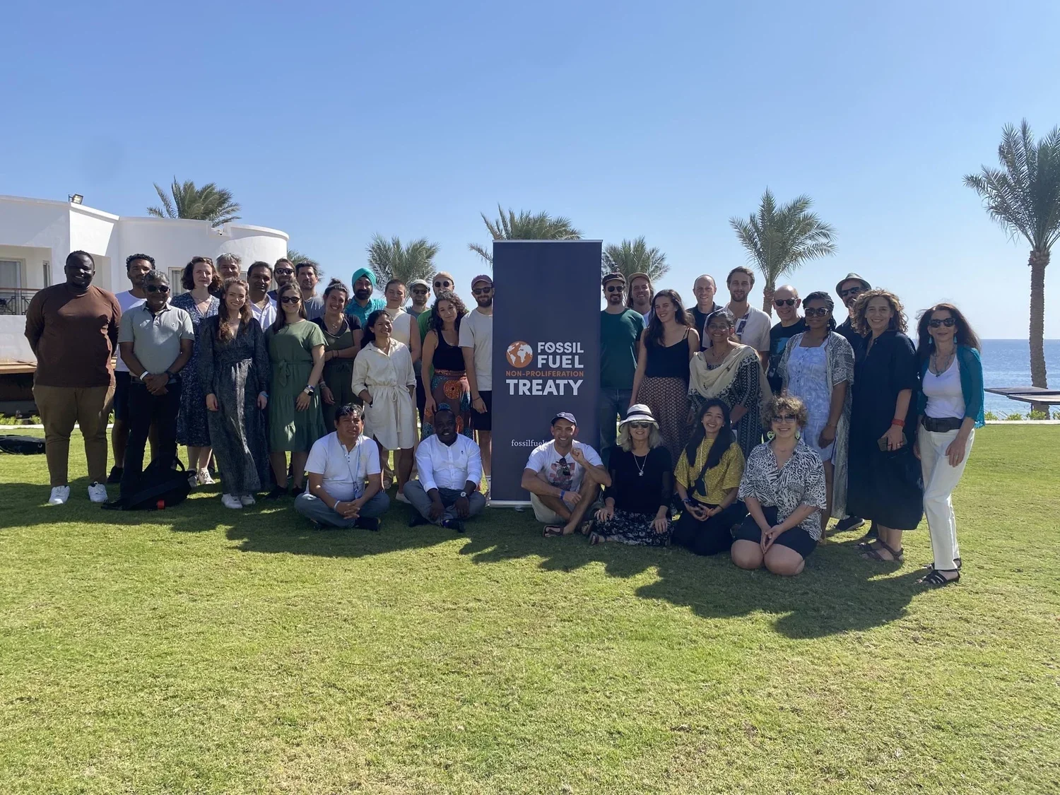 The Fossil Fuel Non-Proliferation Treaty Network culminates their annual 2022 Strategy Workshop with a group picture by the Red Sea.