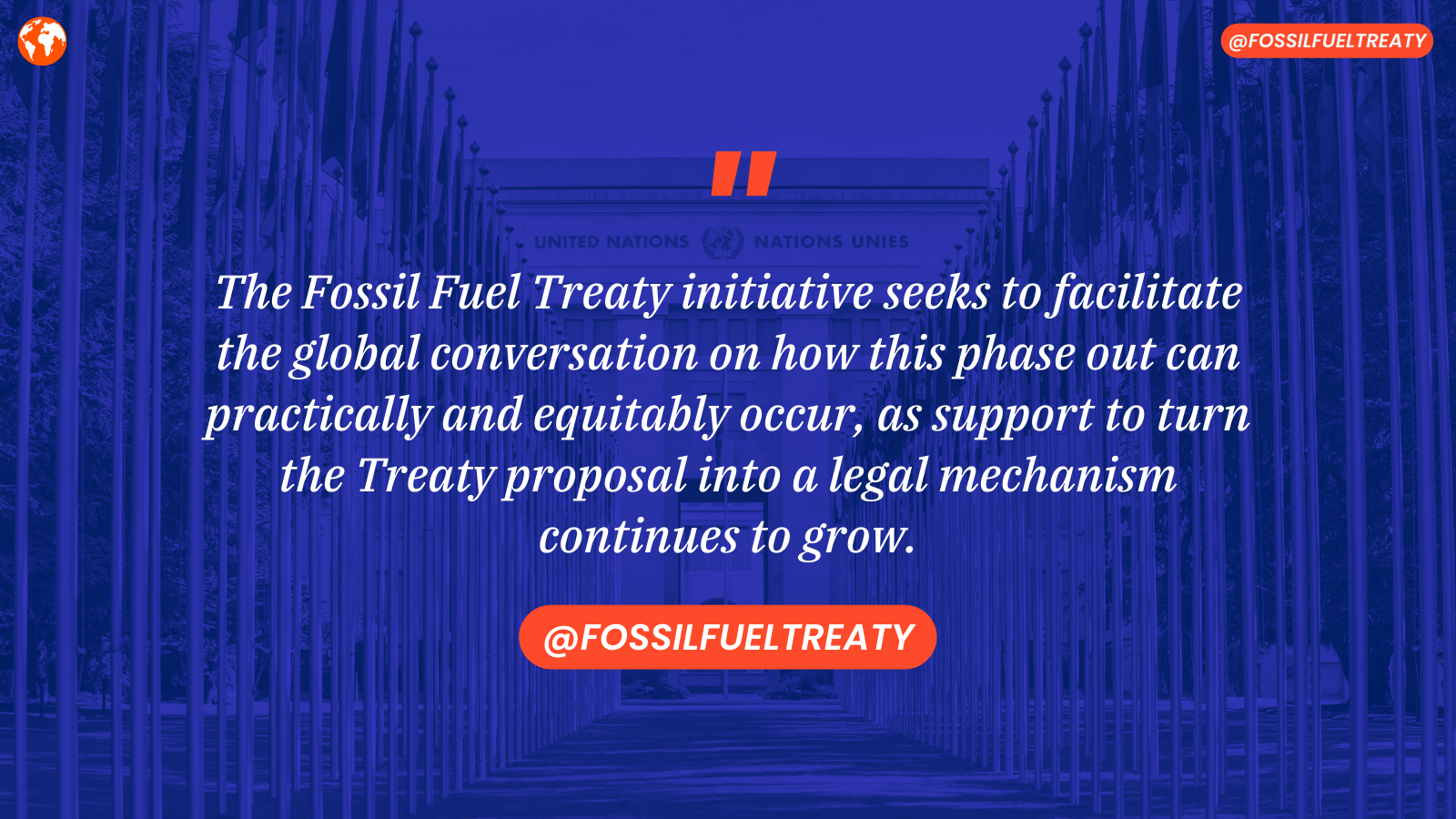 The global coalition of organisations, institutions, nations, cities, activists, grassroots movements, and elected officials behind the Fossil Fuel Treaty campaign remain mobilised to advance calls for a Fossil Fuel Treaty and a just transition away from fossil fuels, including several key moments in 2023, such as the upcoming United Nations General Assembly, the UN Secretary General's Climate Ambition Summit, and COP28.