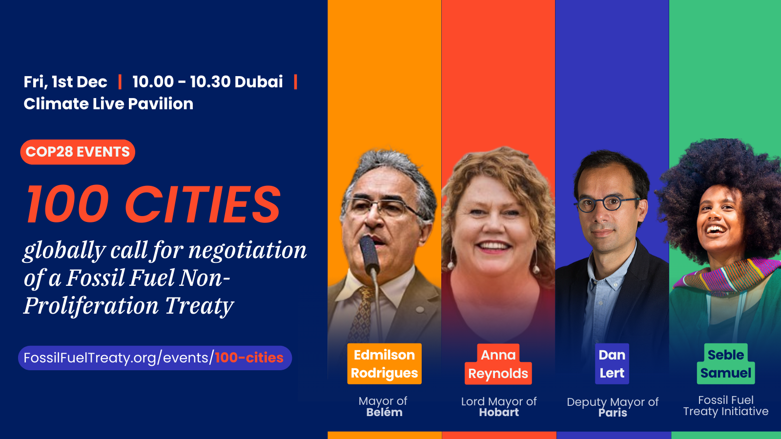 For the first time in history, 100 cities and subnational governments are rallying behind the call for a Fossil Fuel Non-Proliferation Treaty, a global initiative to end fossil fuel expansion, equitably phase out coal, oil and gas, and propel a just transition to renewable energy for all.