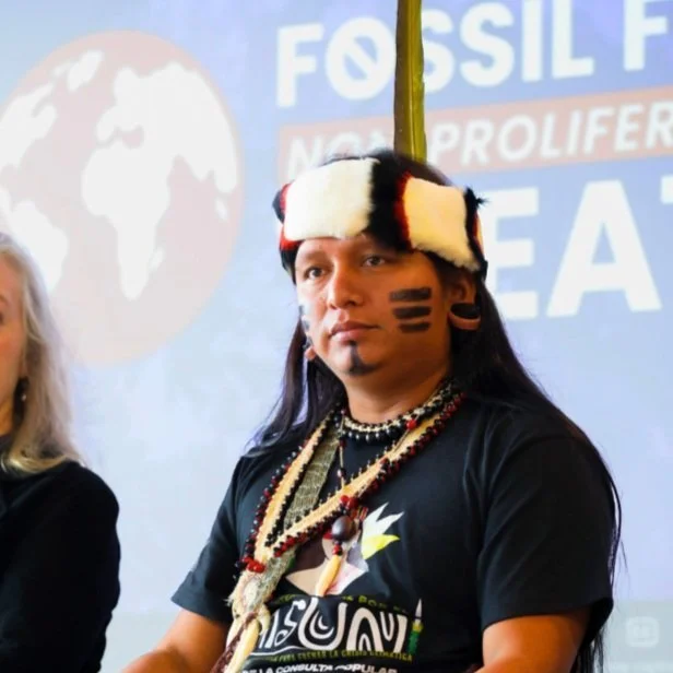 Juan Bay is an Indigenous leader from Ecuador, President of the main Waorani organization in Ecuador, known as NAWE (Waorani Nationality of Ecuador), and one of the main leaders involved in the referendum against oil exploration in the Yasuní National Park.
