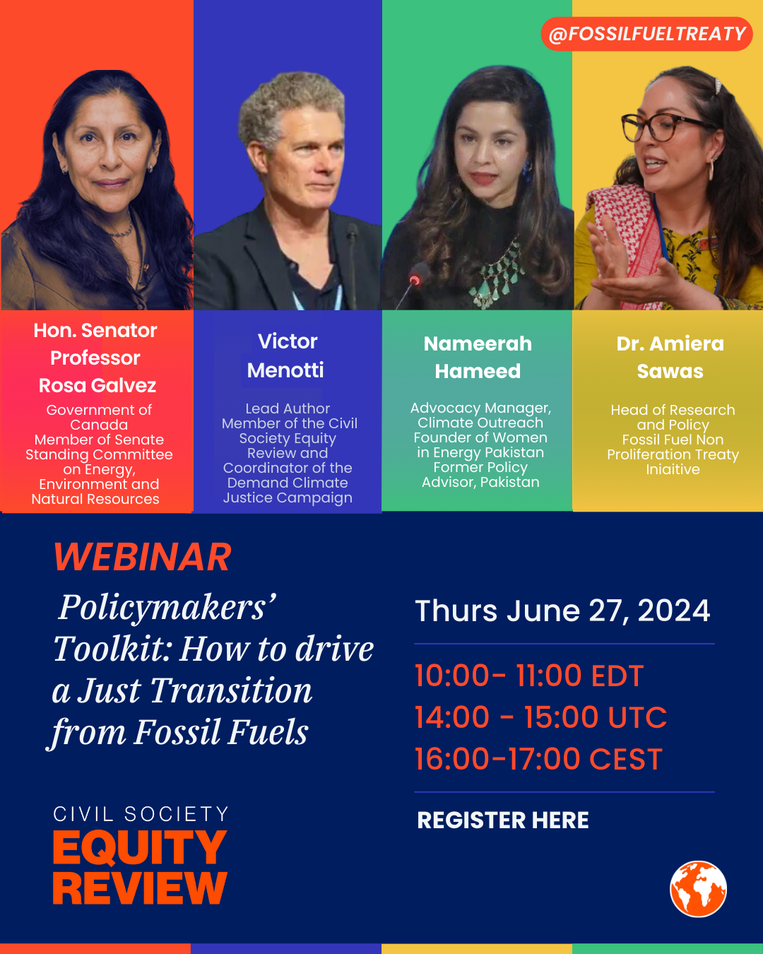 Join the Fossil Fuel Non-Proliferation Treaty and Civil Society Equity Review in the webinar to launch the Policymaker’s Toolkit: How to drive a Just Transition from Fossil Fuels