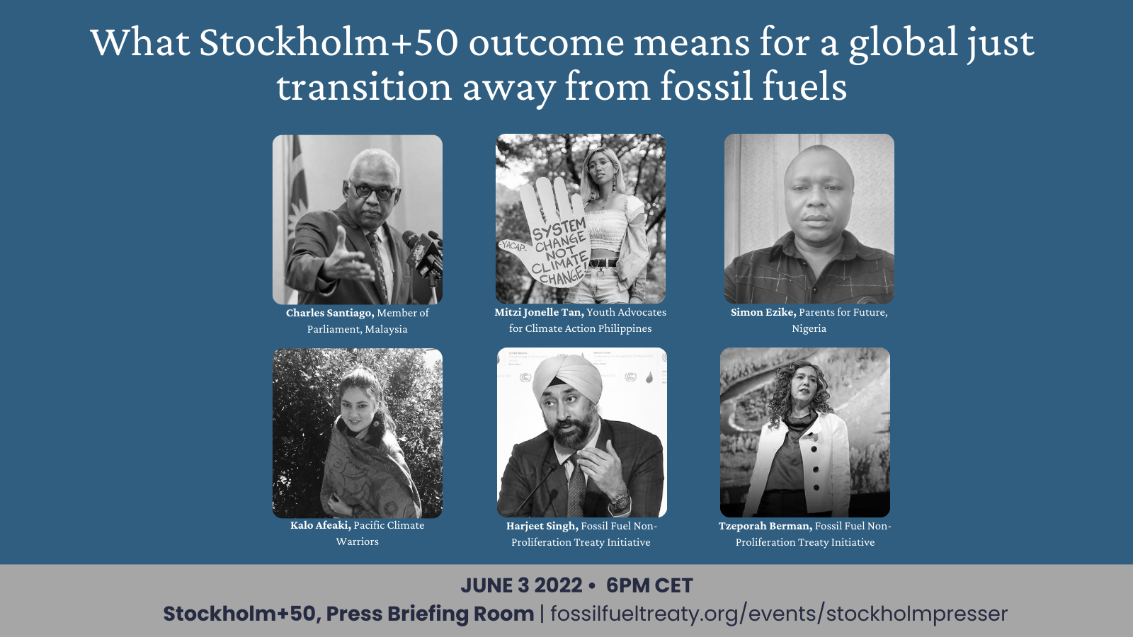 A global panel of elected officials and civil society voices will react to the Stockholm+50 final text, its implications in the lead up to COP27 in Egypt and why this all points to a Fossil Fuel Non-Proliferation Treaty.