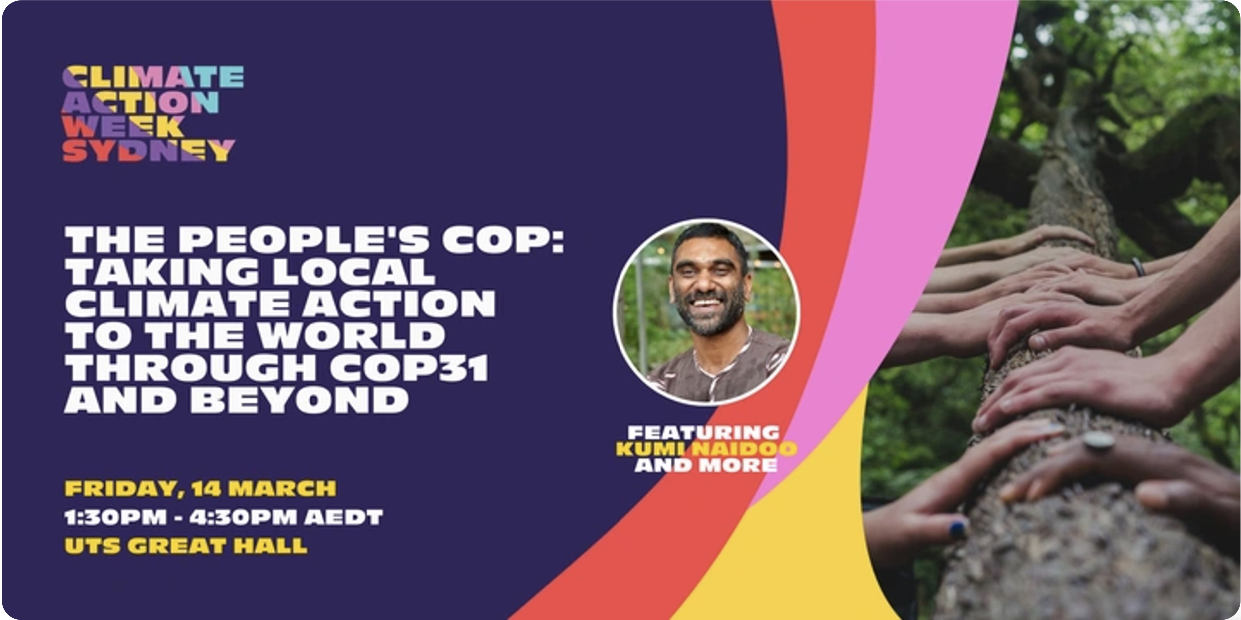 This exciting plenary event will weave together various COP31-related strands from Climate Action Week and share community stories to set the scene for an inclusive and ambitious COP31 in 2026. It will culminate in a keynote speech from and discussion with Kumi Naidoo, President of the Fossil Fuel Non-proliferation Treaty Initiative and self-identified troublemaker.