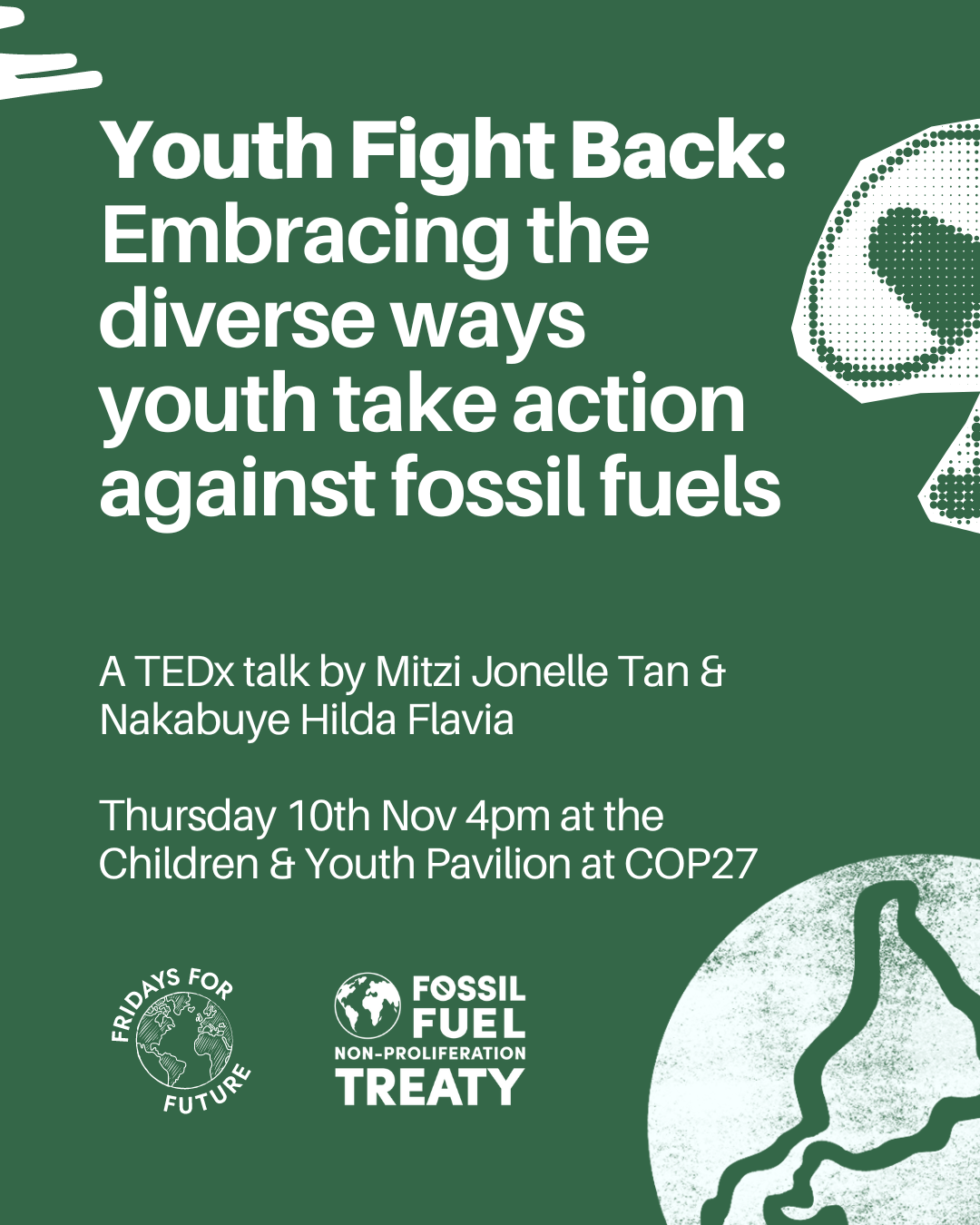 Hear a TEDx talk from two leading Fridays for Future activists – Mitzi Jonelle Tan and Nakabuye Hilda Flavia on the diverse ways young people around the world are standing up to coal, oil and gas extraction, including leading the call for a Fossil Fuel Treaty.